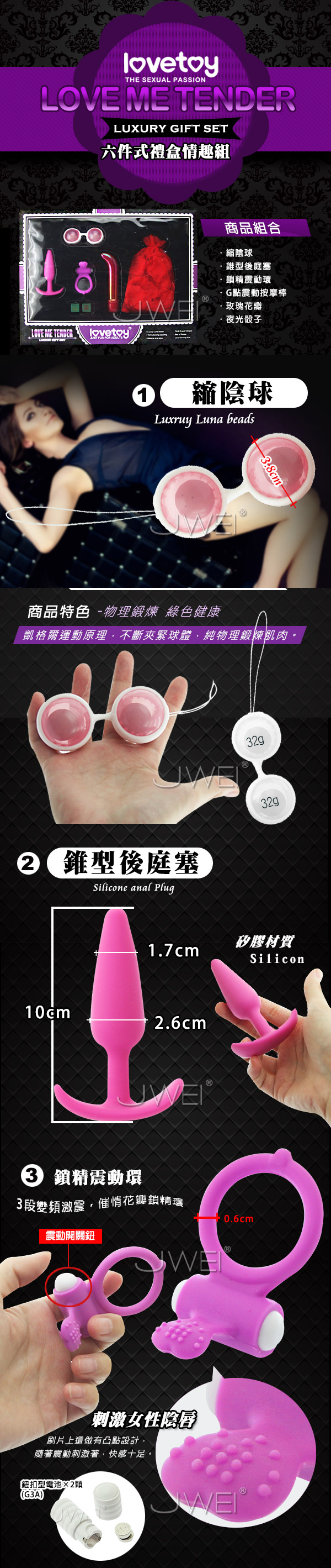 标签 love, tender.情趣豪华礼盒超值六件组(缩阴球+后庭塞, +震动环+g点棒+花瓣+骰子), 情趣豪華禮盒